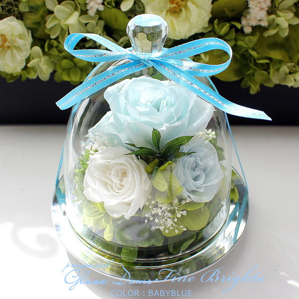 プリザーブドフラワーとグリーンの美しさに今人気!のお洒落なガラスドームの花器のコラボです。これってベストマッチの組み合わせですネ!底面のミラー(鏡)にプリザーブド達が反射されて・・・ん~とにかく見事です!特に自然光が反射した時は素晴らしいですヨ!写真画像で十分伝わっていないか心配です。ガラスで覆われているのでホコリの心配も少ないからオフィスやお店にもOKです!またご自宅のニッチなんかに置いて夜は上部からライトアップしても光が反射してとても美しいのでオススメです。 こちらの商品は【送料無料】でお届けします。